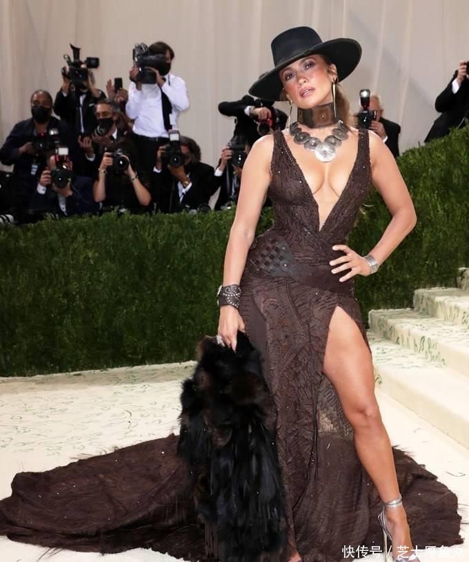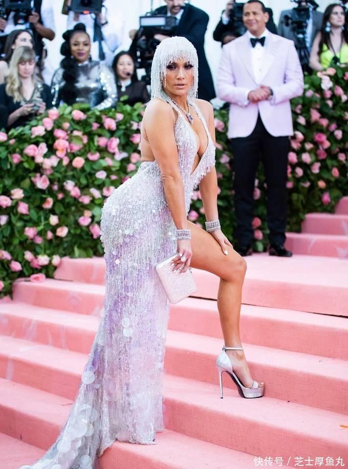 2019年5月6日,詹妮弗·洛佩兹出席纽约深广会艺术博物馆服装学院慈善晚会,庆祝“坎普:前锋札记”展览开幕。她一稔这套丽都的拖地战胜。